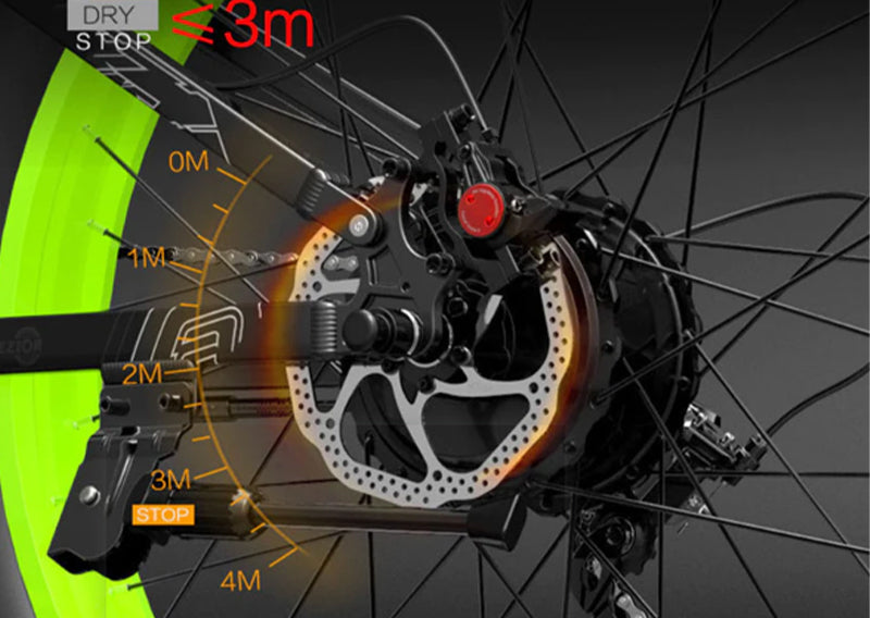Το ηλεκτρονικό μας ποδήλατο είναι εξοπλισμένο με ελαστικά για παντός εδάφους 26*4.0, παρέχοντας αντιολισθητικά και αντικραδασμικά χαρακτηριστικά για άνετη οδήγηση. Με πλάτος 10cm, απολαύστε μεγαλύτερο άνοιγμα και βελτιωμένη απόδοση.