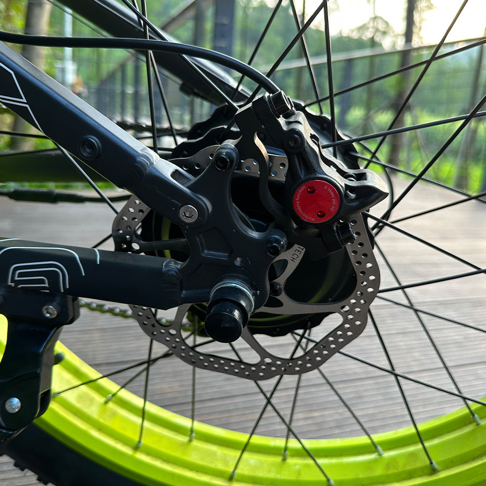 Equipada con disco de aceite de apagado automático, nuestra bicicleta cuenta con frenos de disco dobles delanteros y traseros con discos en forma de S para una rápida disipación del calor. Disfruta de un frenado eficiente y suave, incluso en emergencias.