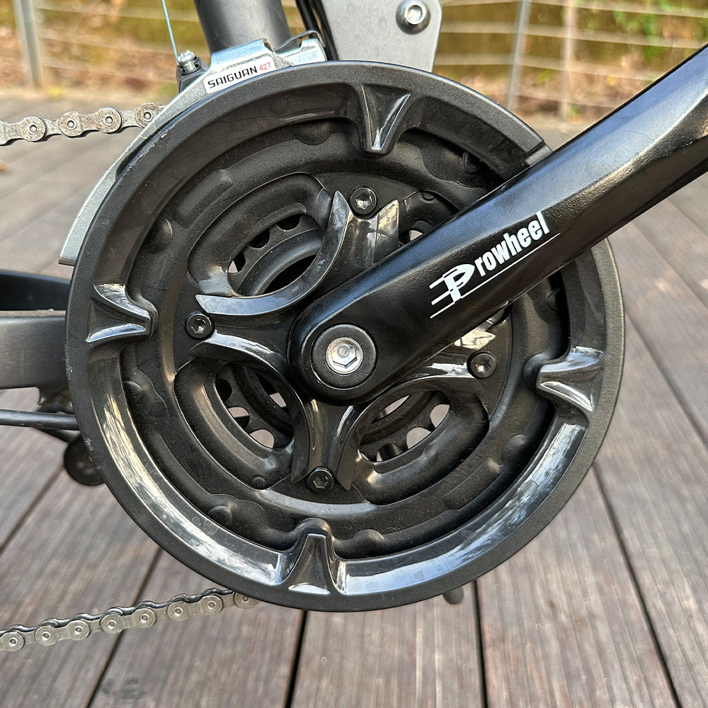 Esta bicicleta cuenta con un sistema de transmisión Shimano importado de 27 velocidades con una manivela de aleación de aluminio de plato de 3 niveles personalizada, una combinación clásica de 9 velocidades y un posicionamiento SIS preciso para una conducción duradera y placentera.